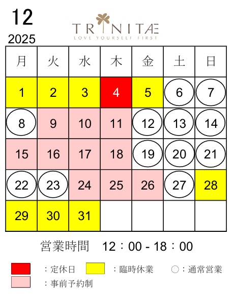 2025年12月の営業日は以下のとおりです。
